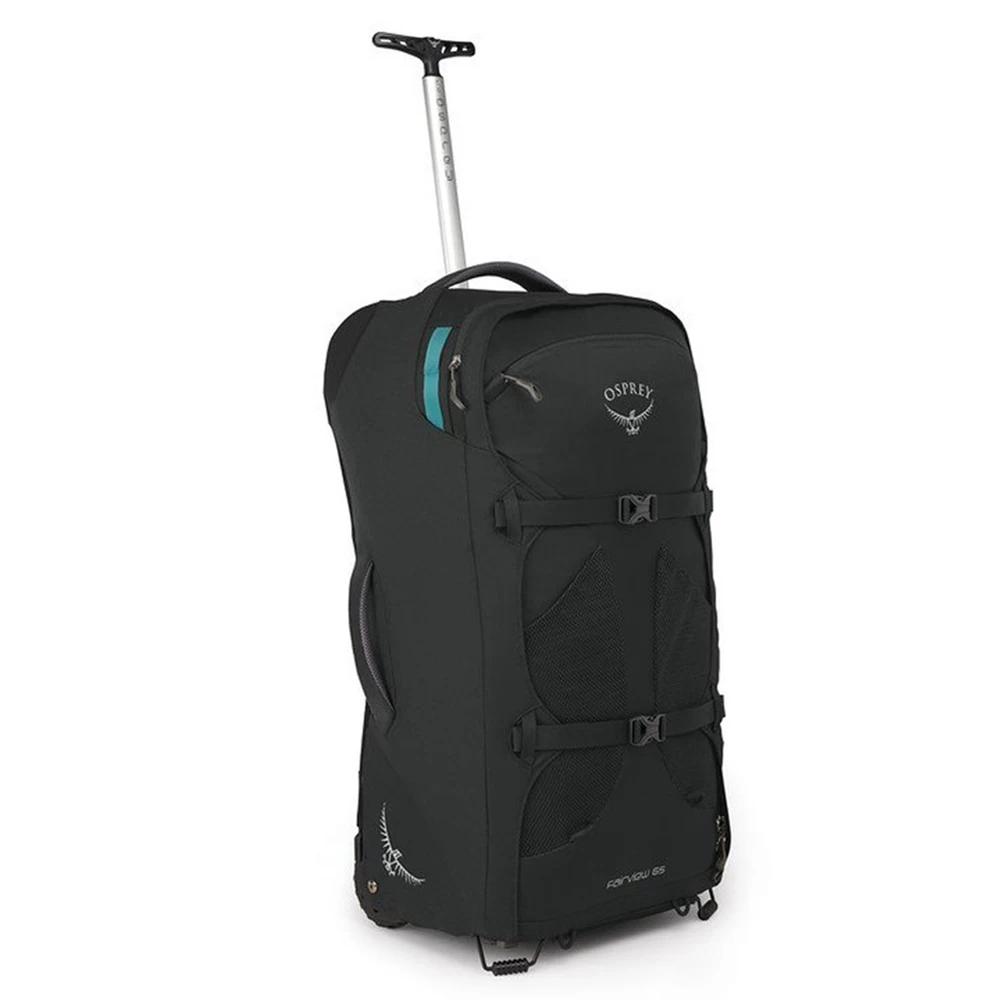 - Dual internal compression straps with fabric wings keep clothes neat